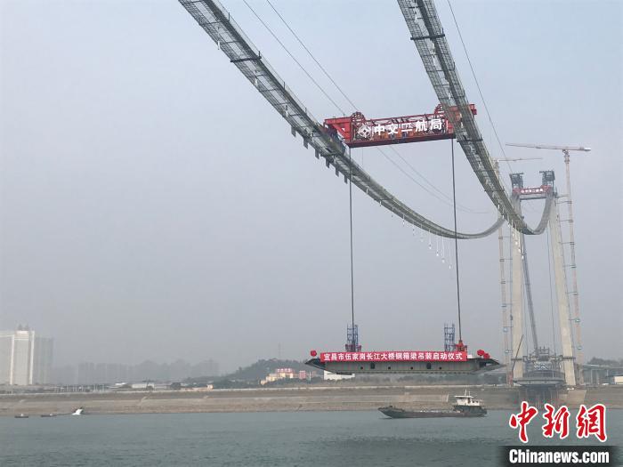 摘要:圖為,宜昌伍家崗長江大橋首榀鋼箱梁吊裝現(xiàn)場 雷偉利 攝