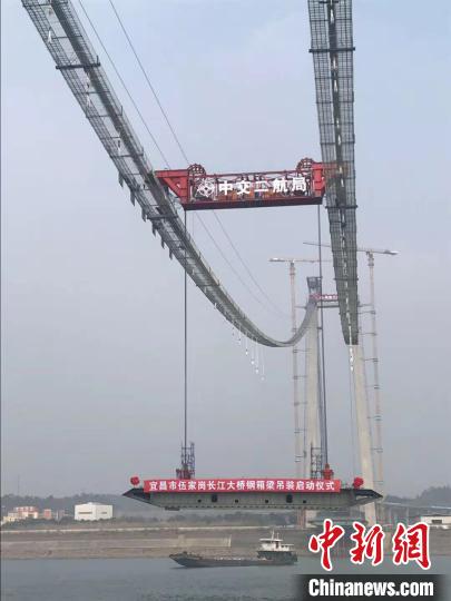 中交二航局宜昌伍家崗長江大橋項目負(fù)責(zé)人李輝介紹,此次架設(shè)的首節(jié)鋼箱梁為跨中梁段,長34.7米,梁寬15米,梁高2.8米,重量243.5噸,吊裝難度高、風(fēng)險極大。為了順利完成此次吊裝施工,項目部早在一個月前就組織技術(shù)人員制訂了鋼箱梁吊裝專項施工方案,并通過了專家評審。由于長江航道水運繁忙,項目部提前和海事部門溝通采取了臨時封航措施并提前開始謀劃、預(yù)演,以確保鋼箱梁吊裝工作順利進行。大橋鋼箱梁吊裝預(yù)計于2021年1月中上旬全面完工。